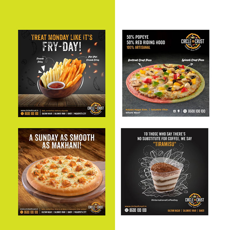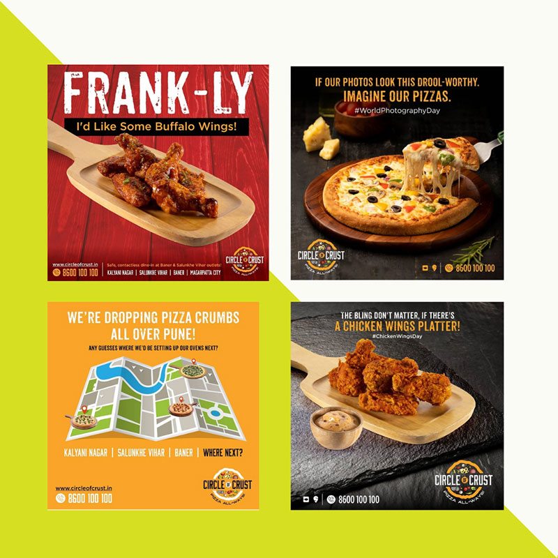 Circle of Crust is a unique, healthy-crust pizza brand that offers a variety of delicious and nutritious pizza options. We were approached by Circle of Crust’s allied marketing agency to help them with their social media conceptualization, social media strategy, internal communication, content creation, copywriting, and concept development of print and packaging content.