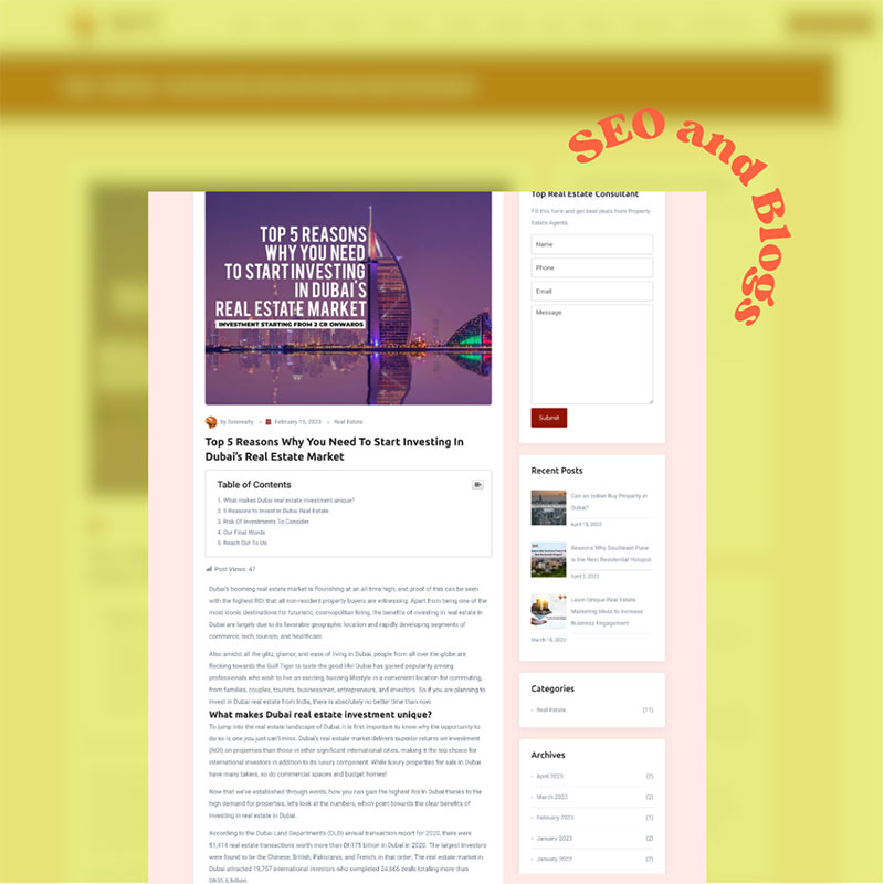 Sole Real Estate Consultants is a real estate sales and marketing firm based in India and Dubai. Our team was brought in to develop content for their lead generation campaign and improve the company’s website SEO with blogs and content.