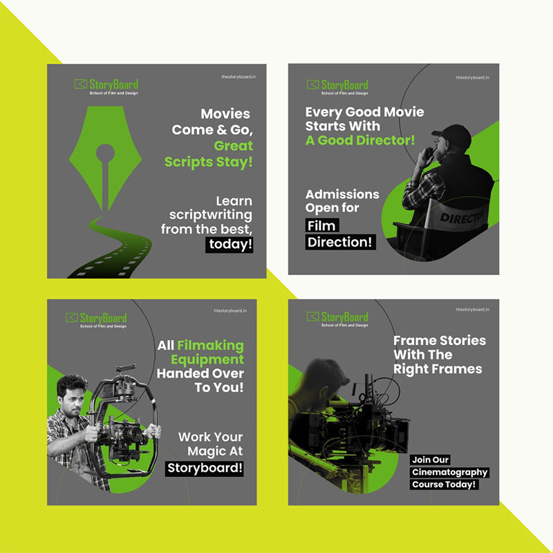 Story Board Film School is a leading film school in India that offers courses and workshops on filmmaking and video production. Our team was brought in to help Story Board Film School improve its social media strategy and content creation efforts.