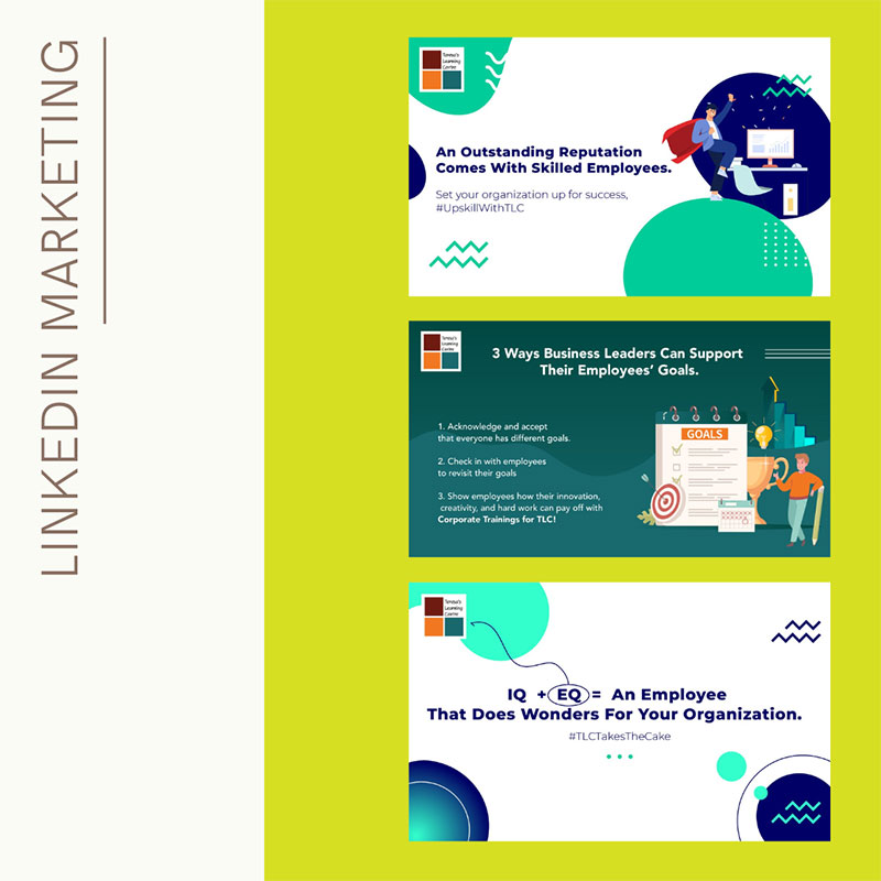 Teresa’s Learning Center is a corporate training provider that helps organizations develop their employees’ skills and knowledge. Our team was approached by Teresa’s Learning Center to help them with their LinkedIn marketing and content.